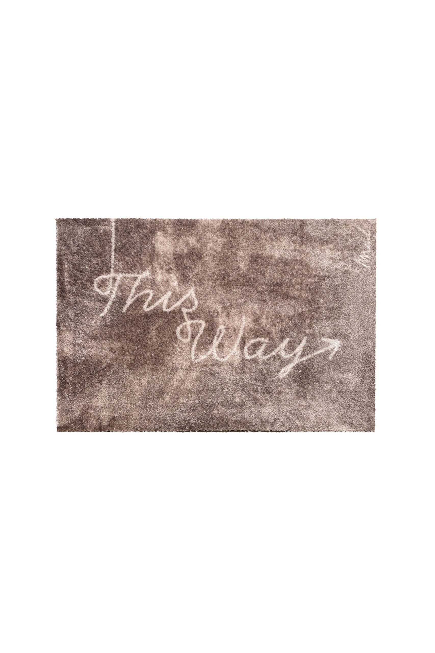 Voeg karakter toe aan je interieur met tapijt Wallie uit de stijlvolle collectie van Mad About Mats. Deze bruine mat met de speelse tekst “This Way” is een echte blikvanger en past perfect in de badkamer of slaapkamer.