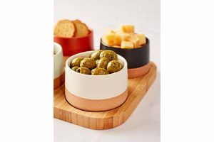 Perfect voor het serveren van tapas, olijven, dips, nootjes of andere kleine hapjes. Dankzij de combinatie van warm hout en modern keramiek krijgt deze set een eigentijdse uitstraling die in zowel een moderne als landelijke keuken past.