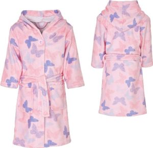 Badjas in fleece met afbeelding vlinder