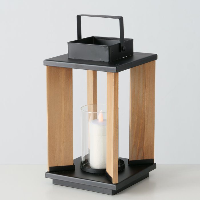 Deze stijlvolle zwarte lantaarn van hout en metaal van het merk Boltze is een echte sfeermaker voor elk interieur of terras.