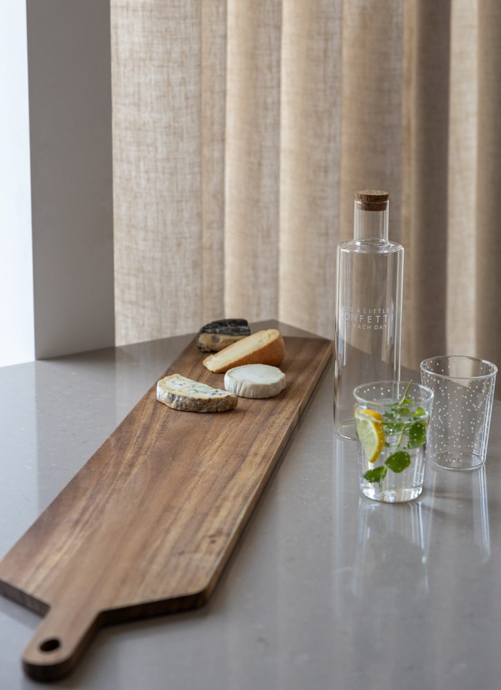 Voeg een vleugje speelsheid en elegantie toe aan je tafel met deze prachtige waterset. De set bestaat uit een stijlvolle karaf van 30 cm hoog met de inspirerende tekst “Add a little confetti to each day”.
