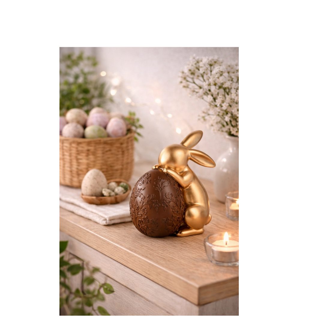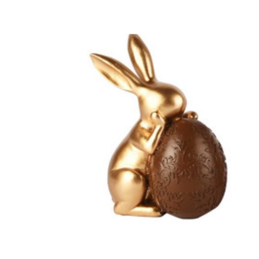 Dit stijlvolle decoratieve konijn is een prachtige toevoeging aan je paas- en voorjaarsinterieur. Het konijn heeft een luxe goudkleurige afwerking en houdt een gedetailleerd ei vast in een warme bruintint. De verfijnde details en glanzende uitstraling zorgen voor een chique en tijdloos accent.