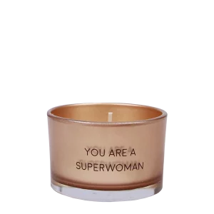 De Sojakaars “you are a superwoman” van My flame lifestyle is een luxe geurkaars van biologische sojawas. Bovenop vind je een gouden waxkroon met de tekst You Are a Superwoman in goud – een perfect cadeau voor vrouwen die erkenning, aanmoediging of een boost van zelfvertrouwen verdienen.