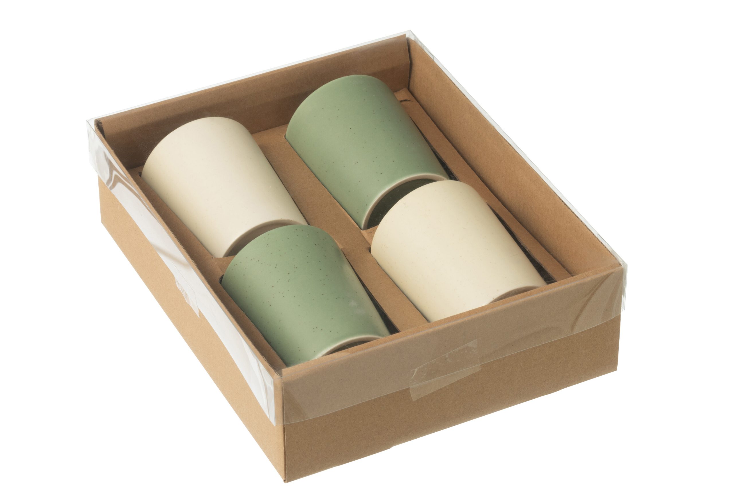 Begin je dag in stijl met deze set van 4 keramische tassen van Jolipa, uitgevoerd in zacht groen- en beigetinten. Met een inhoud van 220 ml zijn ze ideaal voor koffie, thee of warme chocolademelk. Het tijdloze design en het zachte kleurencombinatie brengt warmte naar je serviescollectie.