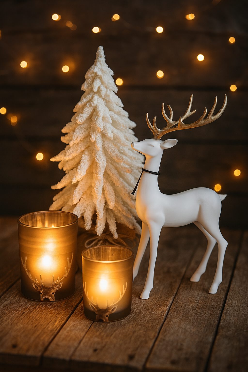 Een elegant rendier met moderne afwerking, dat de set een luxueuze en feestelijke uitstraling geeft.