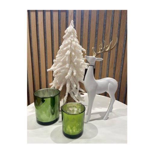 Luxe kerstpakket – rendier, witte Boom & groene theelichthouders