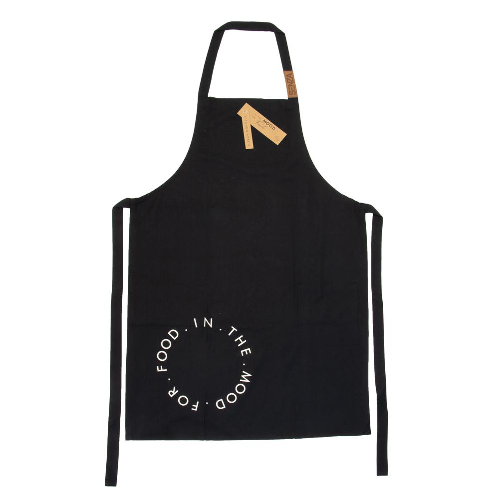 Keukenschort in zwart katoen met witte tekst