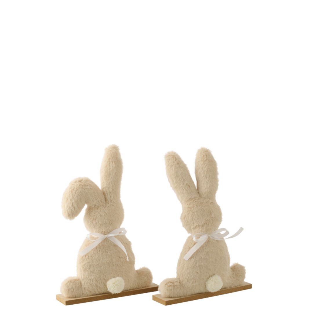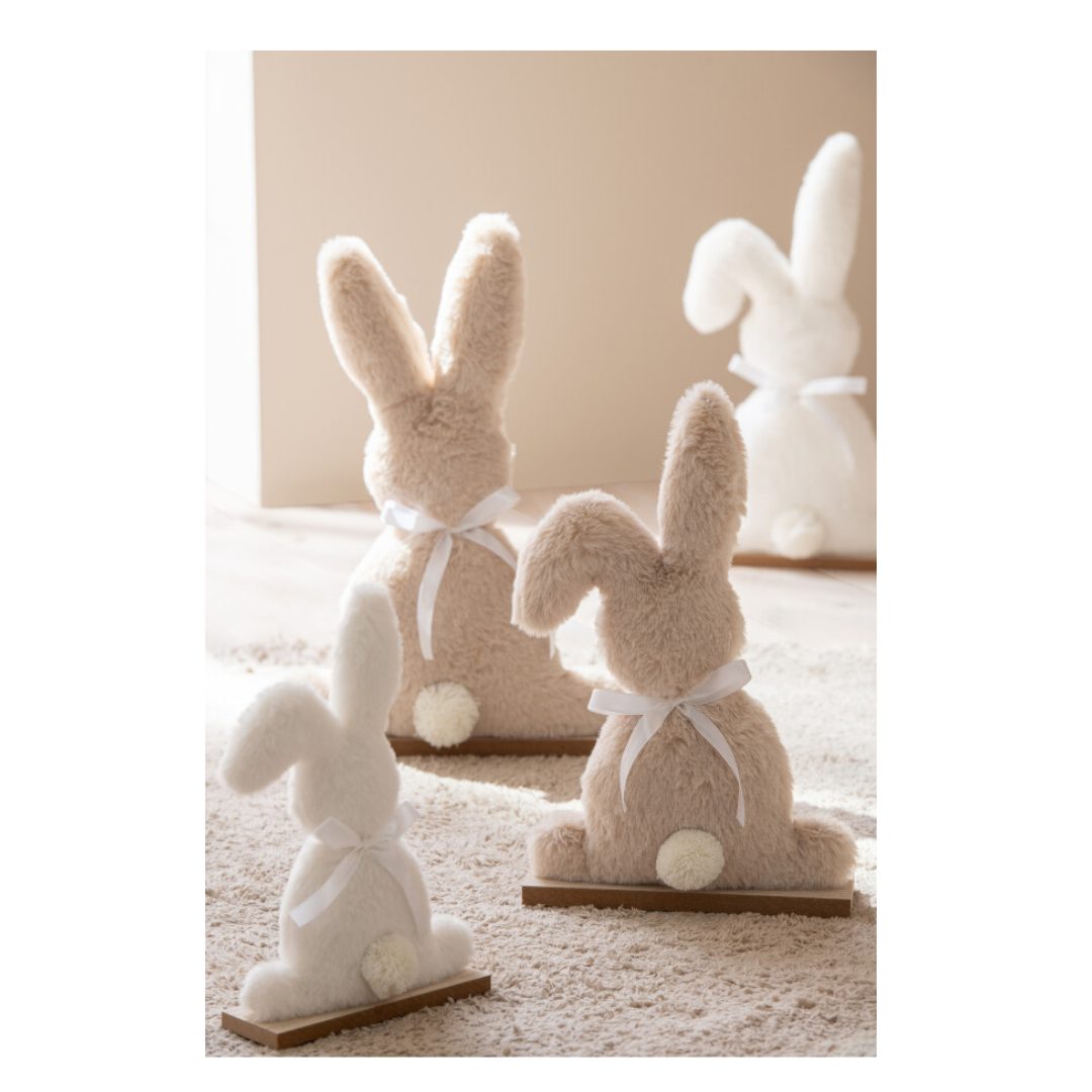 Vrolijk je interieur op met dit schattige pluche konijn van J-Line. Gemaakt van heerlijk zachte stof en afgewerkt met een houten basis en lief strikje. Met zijn afmetingen van 15x5x23 cm is dit konijntje perfect voor elke paastafel, vensterbank of lentehoekje.