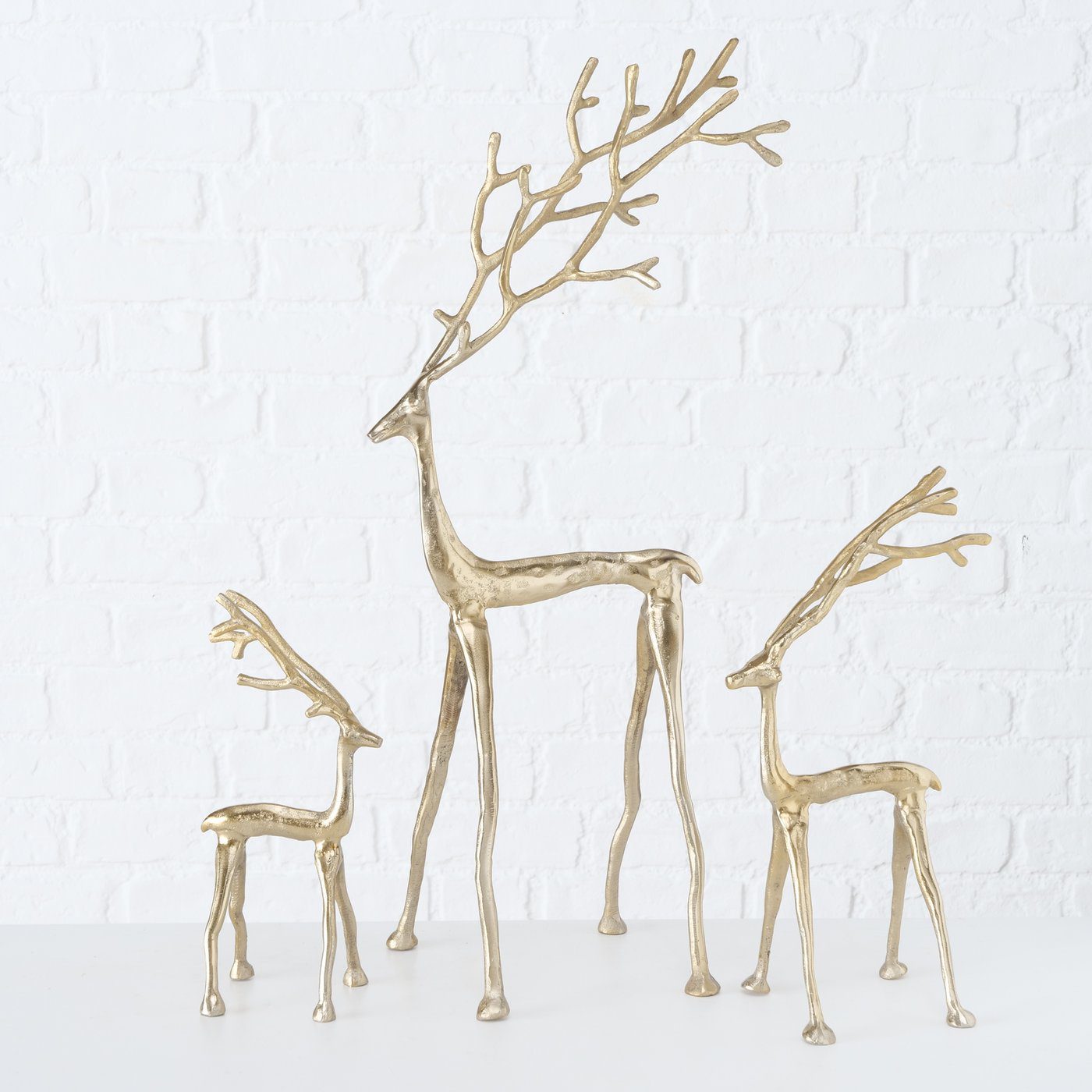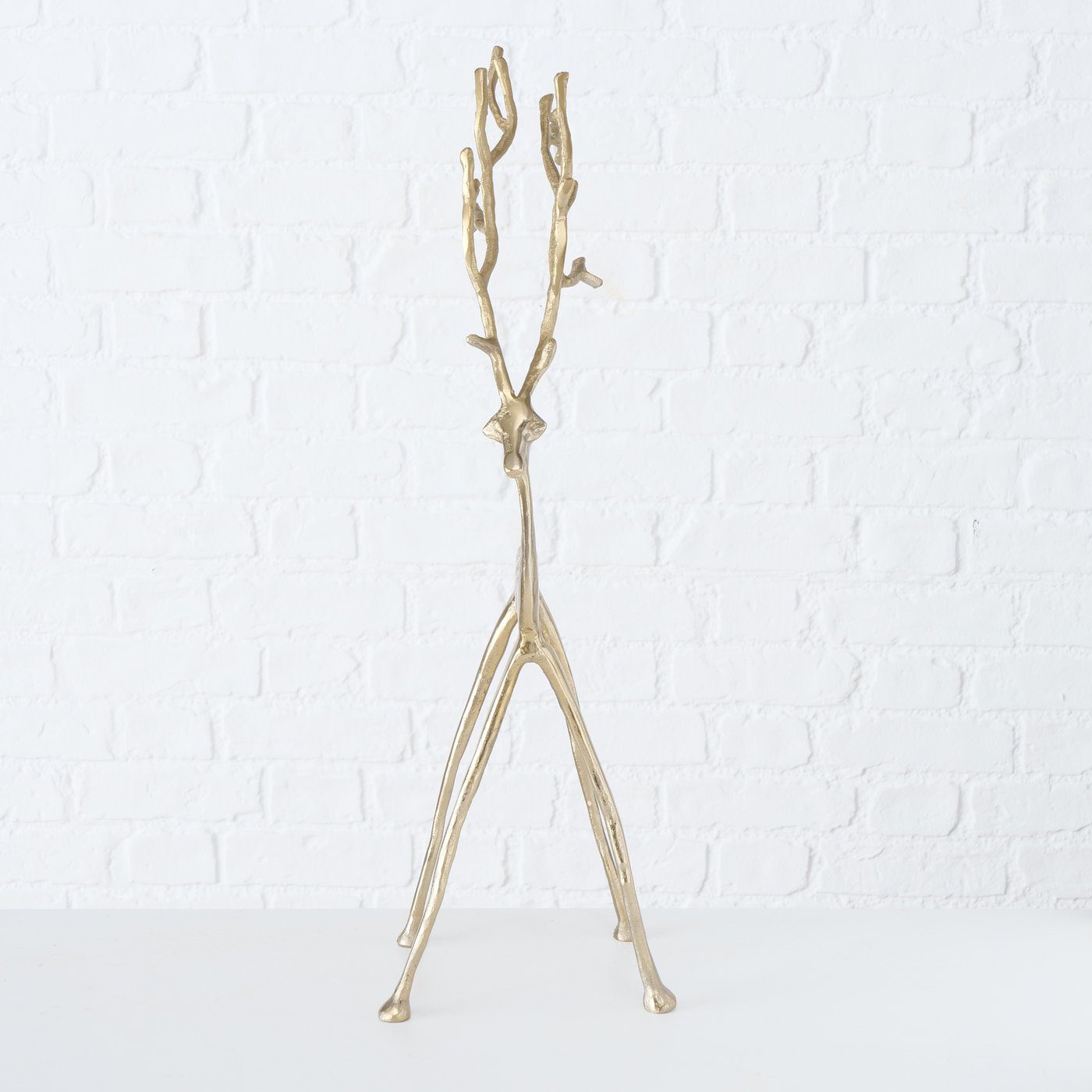 Voeg een vleugje elegantie toe aan je interieur met deze stijlvolle set goudkleurige rendieren van het merk Boltze. Gemaakt van hoogwaardig aluminium en met verschillende hoogtes  is dit rendier een echte blikvanger in elk modern of Scandinavisch interieur.