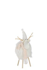 Breng warmte en stijl in je winterdecor met dit charmante rendier van J-Line. Dit sfeervolle rendier is gemaakt uit zachte witte namaakwol en is afgewerkt met een schattige gebreide muts, wat zorgt voor een speelse en gezellige uitstraling. De goudkleurige pootjes geven het rendier een elegante en feestelijke touch — perfect voor de feestdagen!