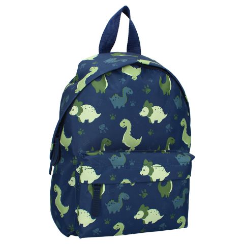 Dit blauwe rugzakje uit de Think Happy Toughts collectie is bedrukt me een leuke dinoprint.