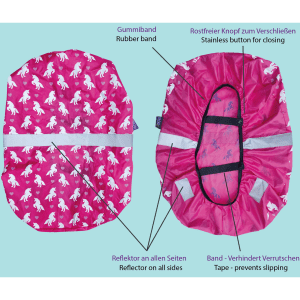 Wanneer de regenhoes droogt, keert de originele look terug. Dus onze magische schooltashoes komt tot leven als het regent. De hoes voor de schooltas zal uw kind zeker bevallen en is zeker een blikvanger op weg naar school!