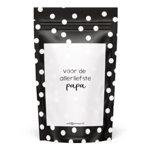 Verpakt in een leuke stazaj in zwart en witte bolletjes en tekst voor de allerliefste papa.