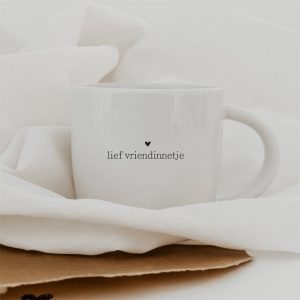 Verras je vriendin met deze tas met tekst “Lief Vriendinnetje”. Perfect als klein gebaar van waardering of als cadeau voor een speciale gelegenheid. Of het nu gaat om koffie, thee of warme chocolademelk – met een inhoud van 380 ml is deze tas er helemaal klaar voor.