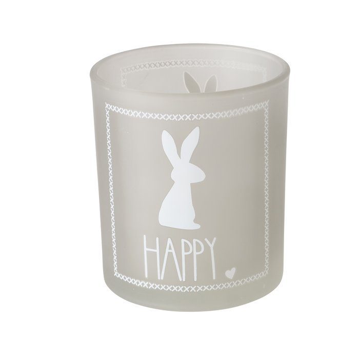Theelichthouder met afbeelding paashaas en tekst happy .