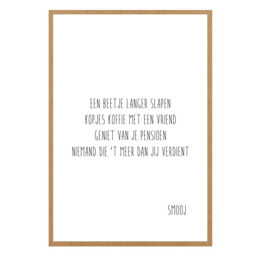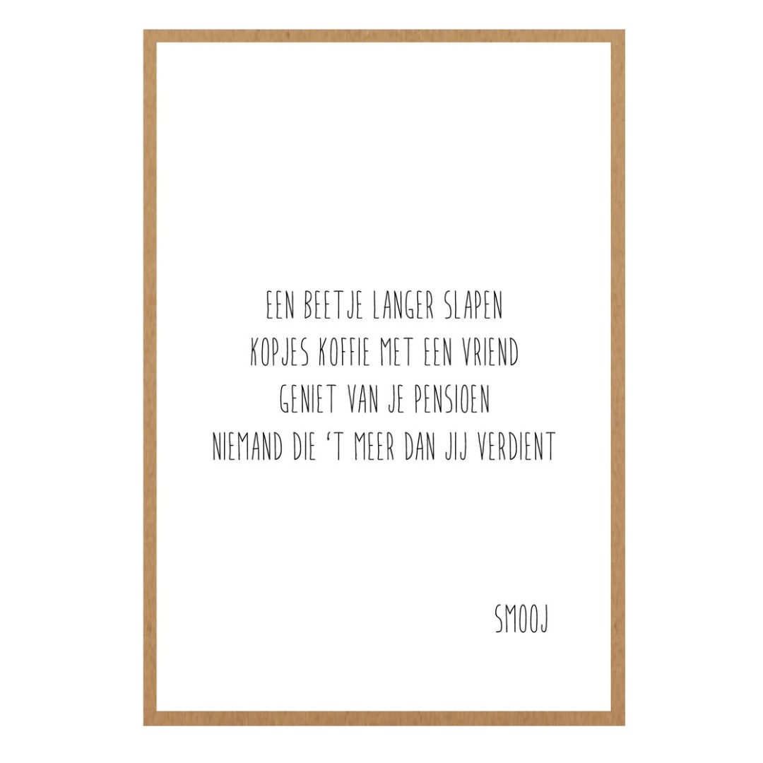 Een lieve wenskaart om te geven als iemand op pensioen gaat. Deze kaart is gedrukt op stevig viltkarton en heeft een tijdloos, minimalistisch ontwerp.
