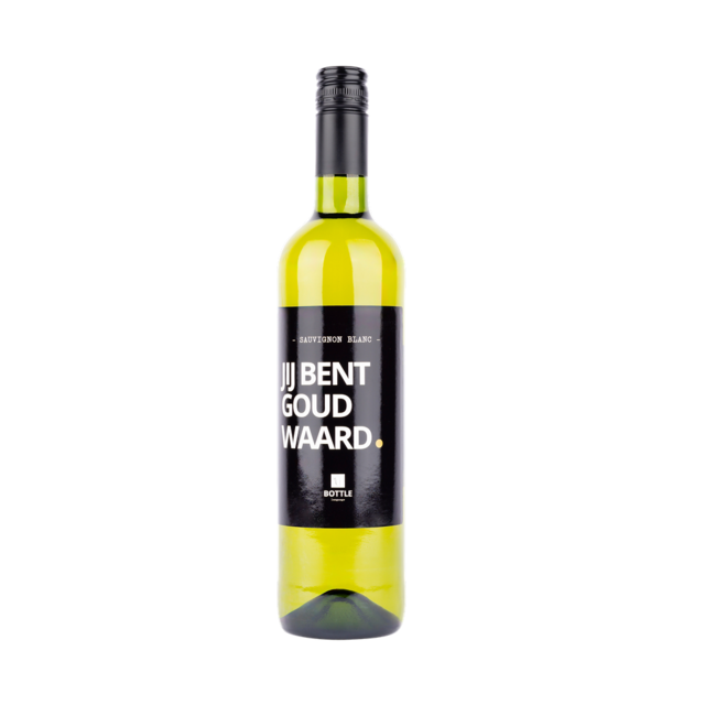 Deze frisse Sauvignon Blanc is niet alleen een feestje voor de smaakpapillen, maar ook een perfect cadeau. Met de tekst “Jij bent goud waard” op het etiket, verras je iemand op een originele én smaakvolle manier.