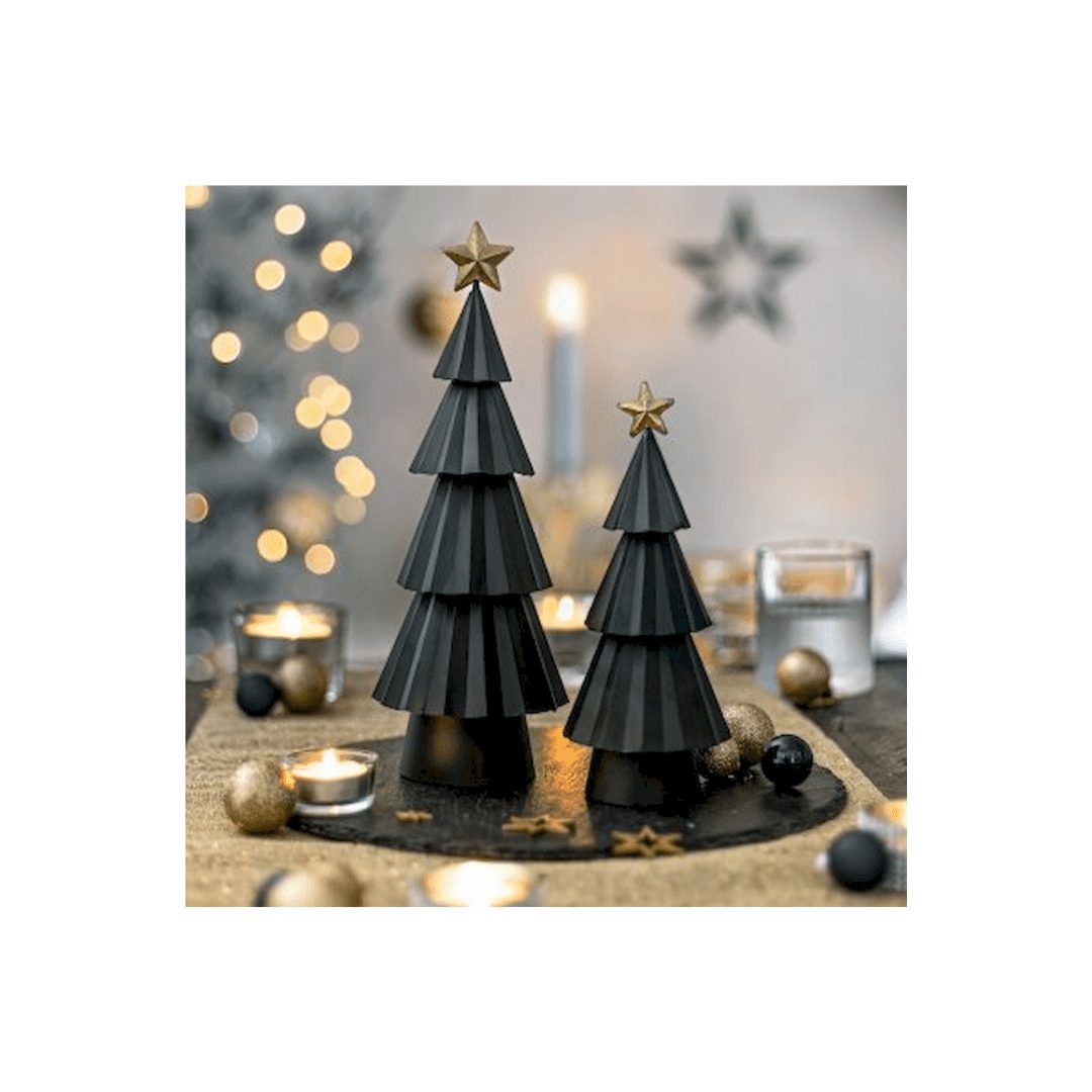 Zwarte metalen kerstboom met ster – 32 cm
