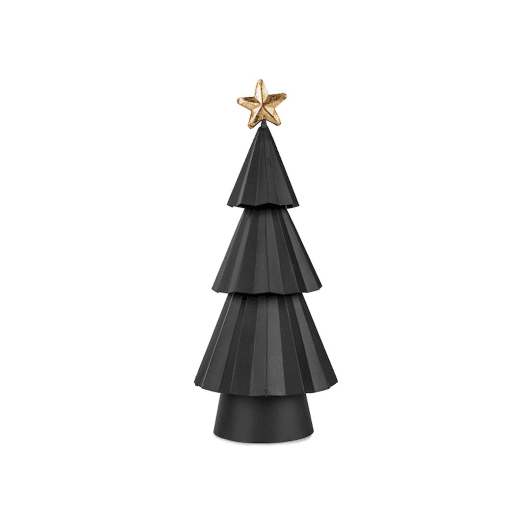 Zwarte metalen kerstboom met ster – 23 cm